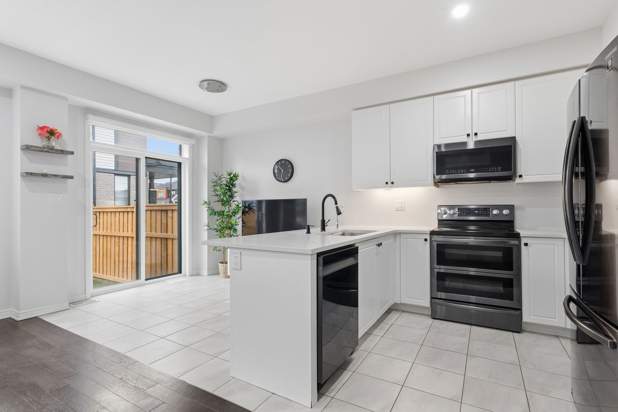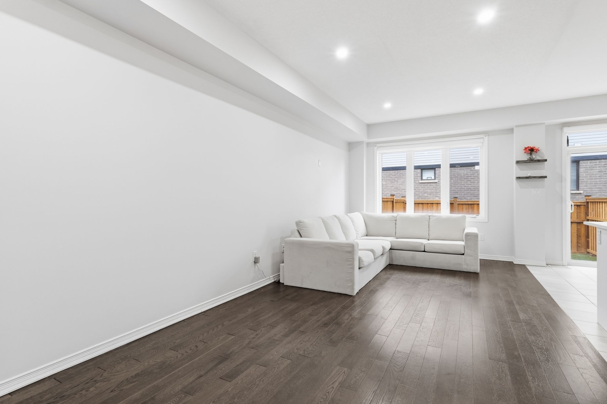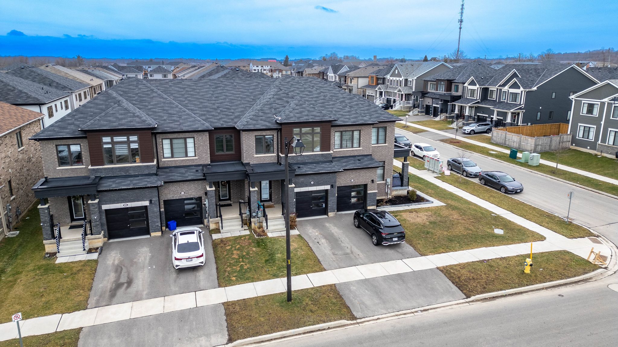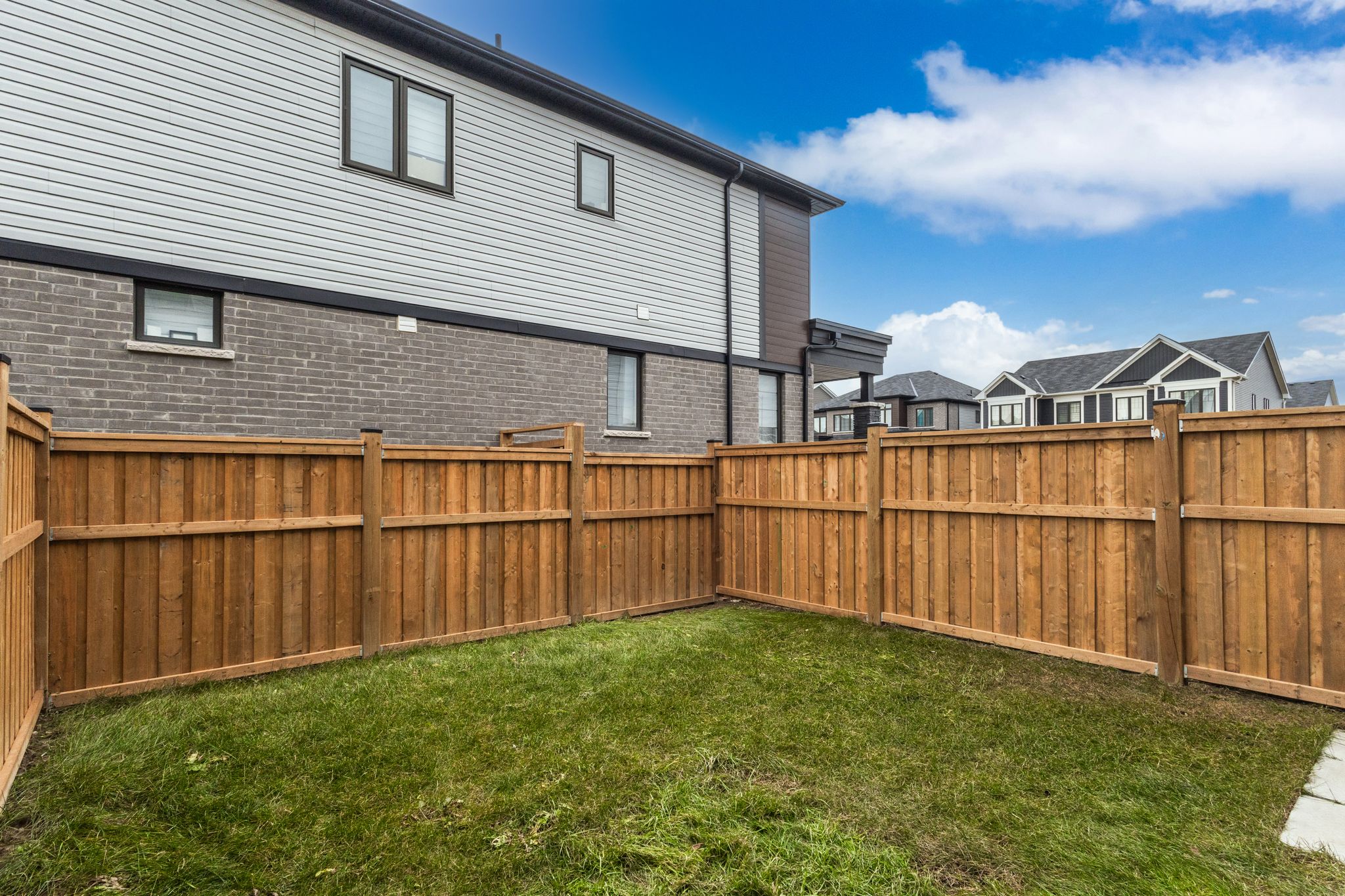 Welcome home to this beautifully designed 3-bedroom, 3-bathroom freehold townhome, built in 2020 and located in one of the area's most vibrant and fast-growing communities. Thoughtfully finished with hardwood flooring, quartz countertops, designer pot lights, and black stainless steel appliances, this home offers a perfect blend of modern style and everyday functionality. The open-concept main floor is ideal for entertaining and busy family life, featuring a contemporary kitchen with clean lines, ample prep space, modern finishes, and pot lighting throughout. A walk-in coat closet off the front entrance provides excellent storage and helps keep the space organized and clutter-free. Upstairs, you'll find three generously sized bedrooms, including a spacious primary retreat complete with a walk-in closet and a private ensuite featuring a soaker tub and separate shower-your own peaceful escape at the end of the day. Step outside to enjoy your fully fenced backyard, offering added privacy and the perfect setting for kids, pets, or summer BBQs. Parking is convenient with a 1-car garage plus a private driveway space. This home is perfectly situated within walking distance to: two elementary schools, two daycare centers, a comprehensive medical hub (walk-in clinic, pharmacy, and dental), Tim Hortons, walking trails, a premier kids' park featuring basketball and tennis courts and a playground. Just minutes away, the Grand River offers scenic trails, kayaking, and year-round outdoor enjoyment. This move-in-ready townhome delivers modern living, comfort, and community-an ideal place to truly put down roots.