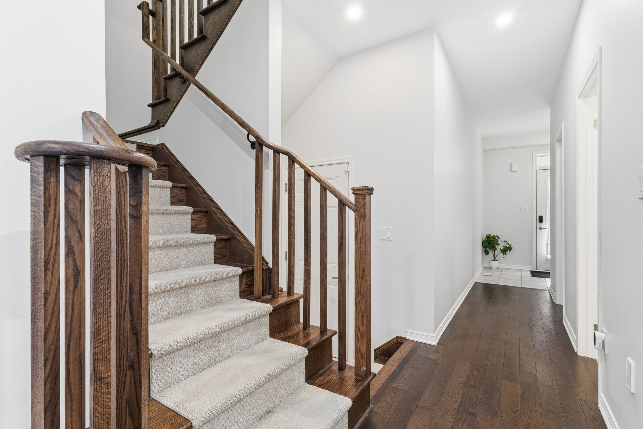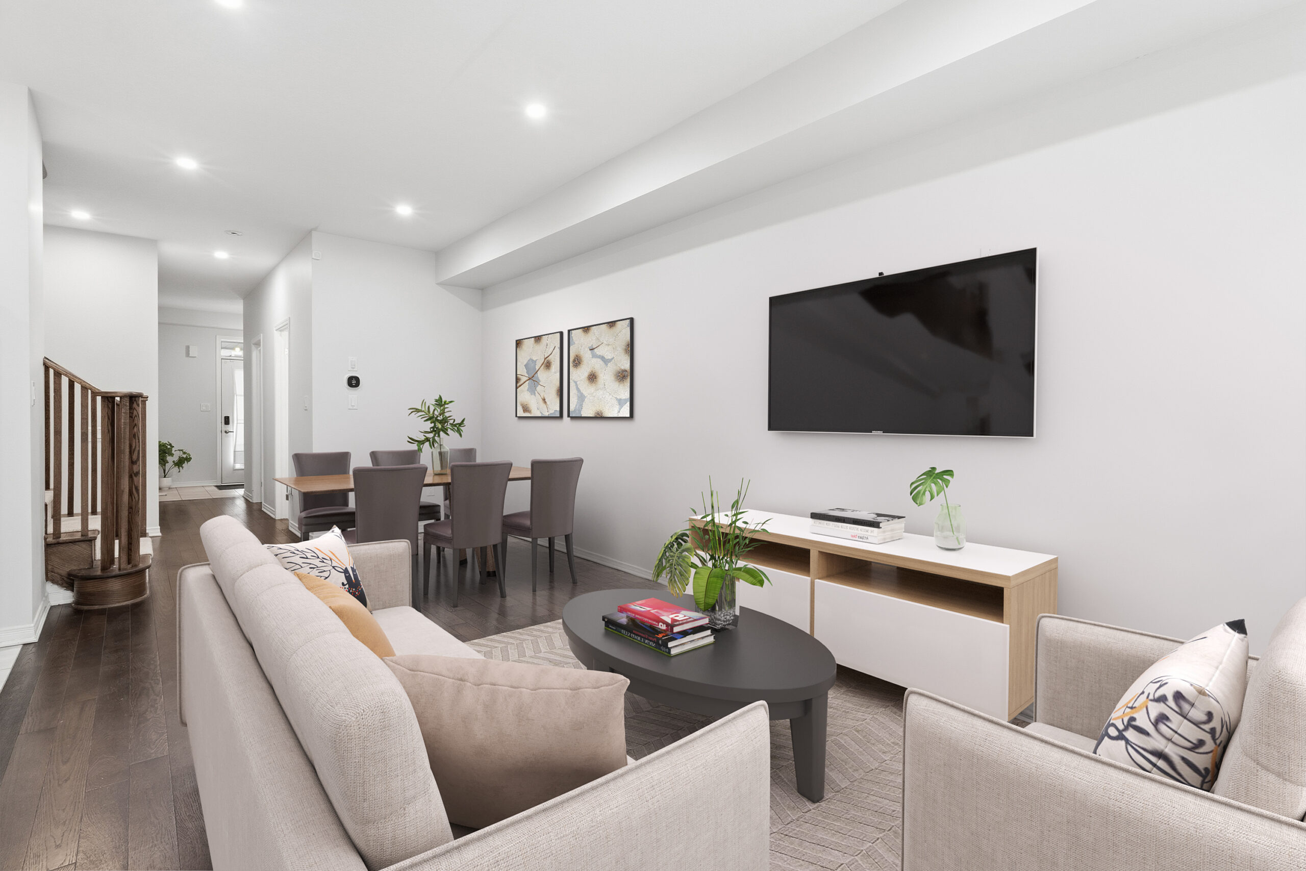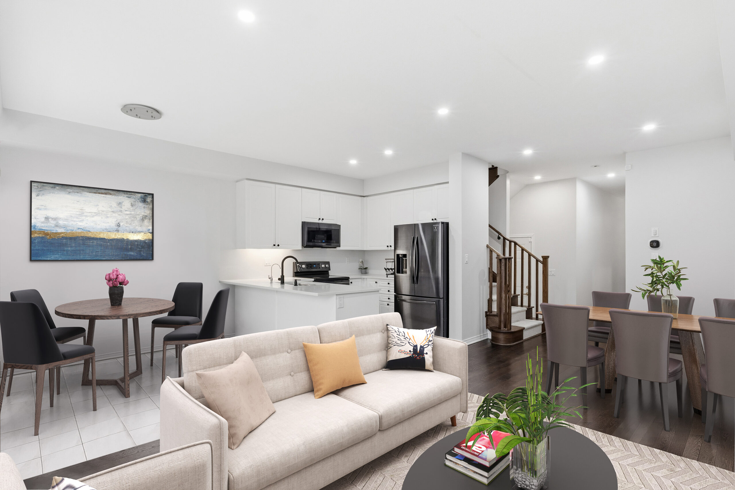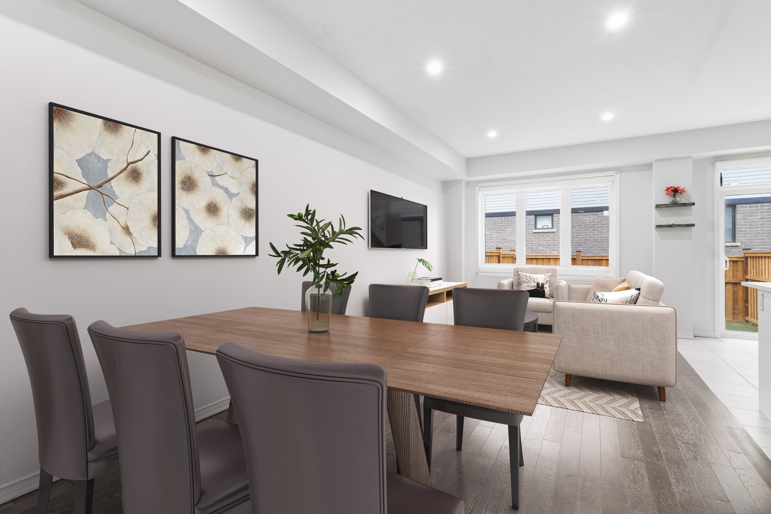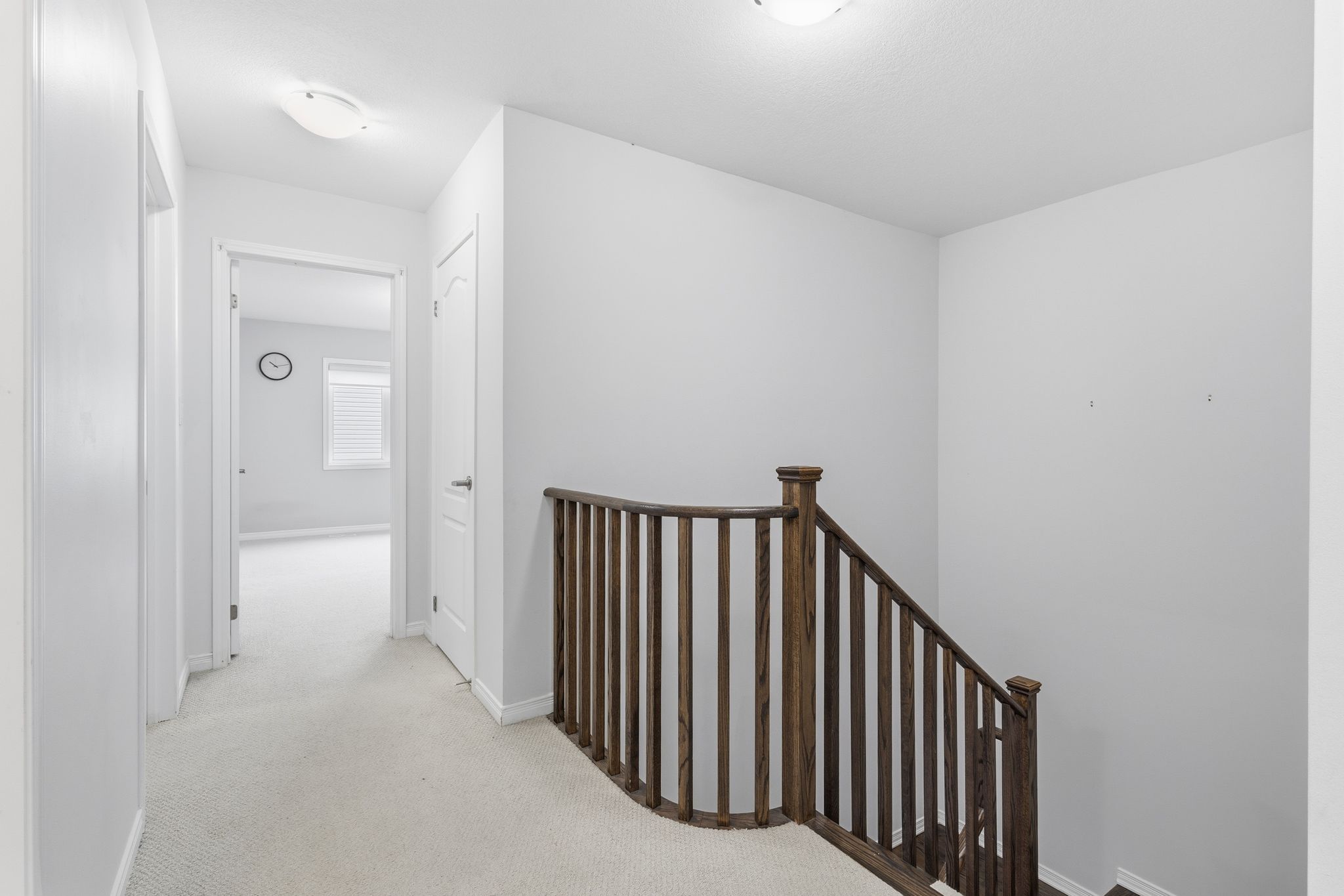 Welcome home to this beautifully designed 3-bedroom, 3-bathroom freehold townhome, built in 2020 and located in one of the area's most vibrant and fast-growing communities. Thoughtfully finished with hardwood flooring, quartz countertops, designer pot lights, and black stainless steel appliances, this home offers a perfect blend of modern style and everyday functionality. The open-concept main floor is ideal for entertaining and busy family life, featuring a contemporary kitchen with clean lines, ample prep space, modern finishes, and pot lighting throughout. A walk-in coat closet off the front entrance provides excellent storage and helps keep the space organized and clutter-free. Upstairs, you'll find three generously sized bedrooms, including a spacious primary retreat complete with a walk-in closet and a private ensuite featuring a soaker tub and separate shower-your own peaceful escape at the end of the day. Step outside to enjoy your fully fenced backyard, offering added privacy and the perfect setting for kids, pets, or summer BBQs. Parking is convenient with a 1-car garage plus a private driveway space. This home is perfectly situated within walking distance to: two elementary schools, two daycare centers, a comprehensive medical hub (walk-in clinic, pharmacy, and dental), Tim Hortons, walking trails, a premier kids' park featuring basketball and tennis courts and a playground. Just minutes away, the Grand River offers scenic trails, kayaking, and year-round outdoor enjoyment. This move-in-ready townhome delivers modern living, comfort, and community-an ideal place to truly put down roots.